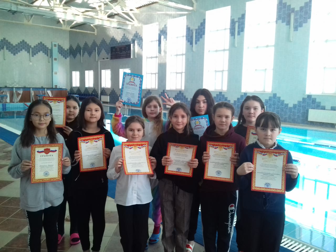 Первенство района по плаванию среди девочек. Учащиеся из нашей школы: Огаркова Полина-1 место, Барлыбаева Элина-2 место, Габитова Алсу -2 место, Янтурина Малика-2 место, Муртазина Гулмарьям -3 место, Сулейманова Динара -2 место. Поздравляем! Молодцы!