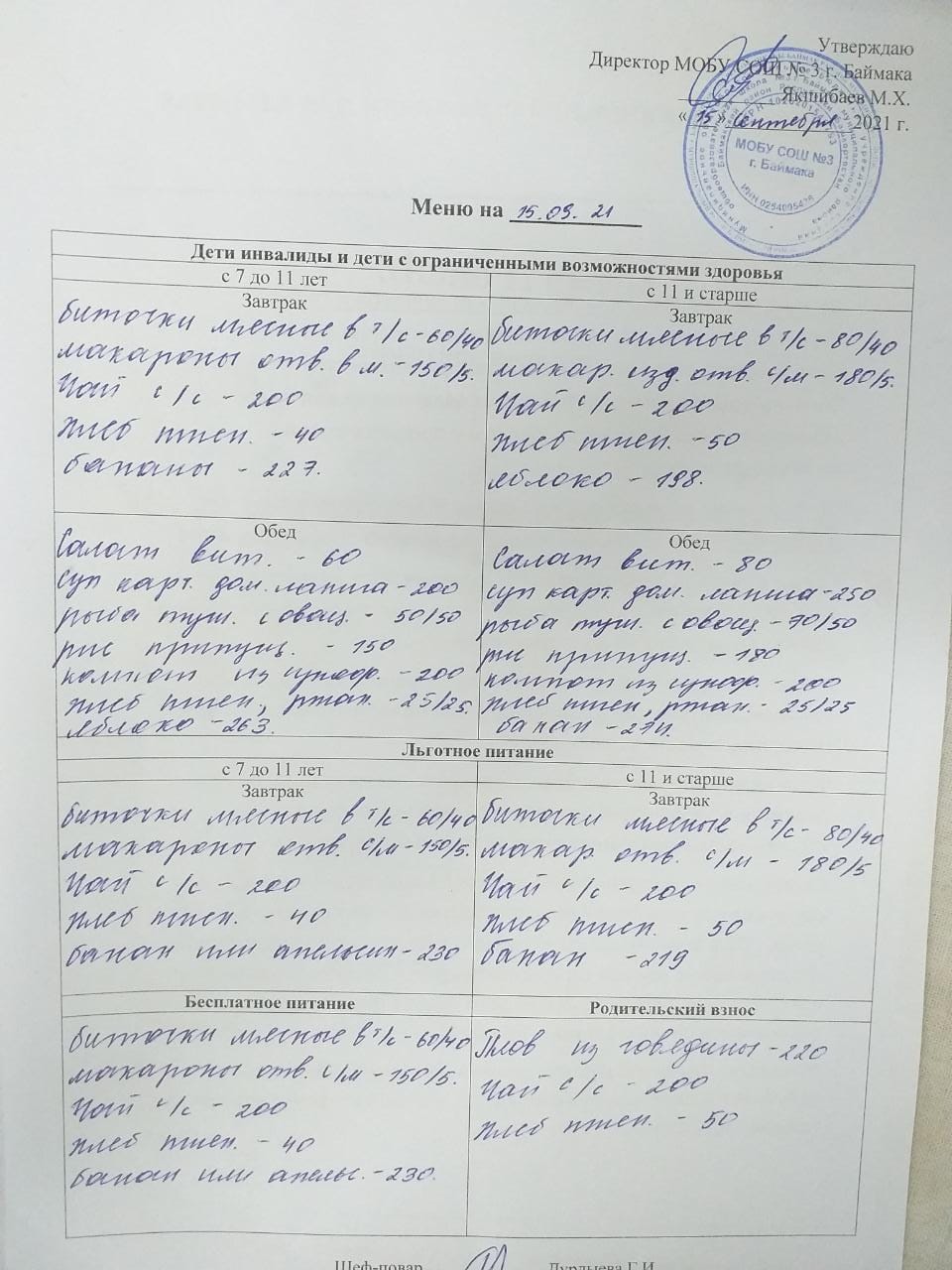 (Меню 1 смена)