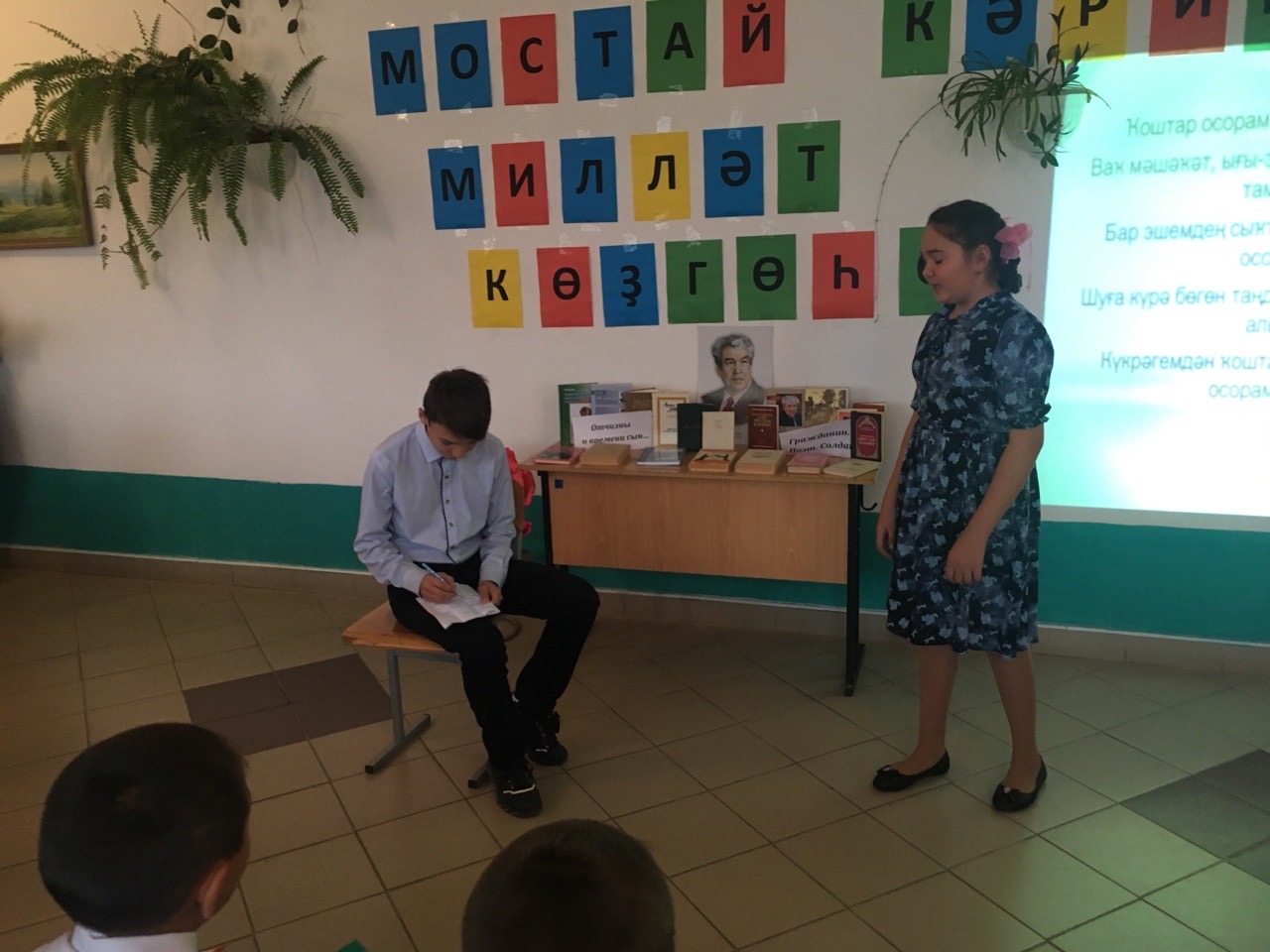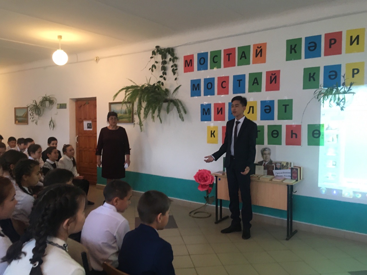 В этот день учащиеся 2-4 классов посетили краеведческий музей, а также с удовольствием инсценировали произведения М. Карима, наряжались в национальные костюмы. Для 5-11 классов была организована выставка книг М. Карима, проведена викторина, в которой приняли активное участие и учителя, учащиеся посетили музей в с. Темясово, также для детей был организован просмотр фильма "Сестренка". По итогам конкурсов песен на стихи М. Карима и его стихов наградили победителей почетными грамотами и подарками.